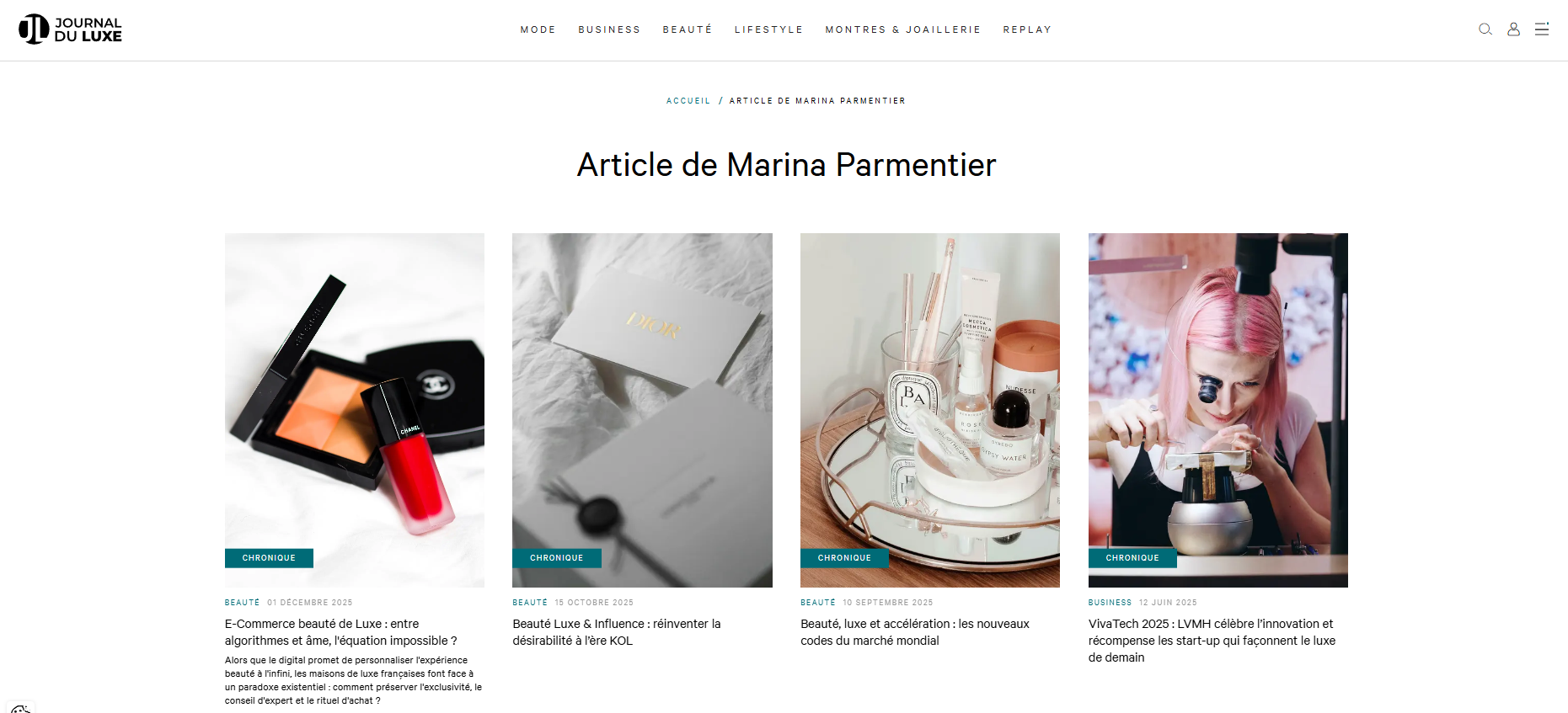 Chroniqueuse régulière pour le Journal du Luxe, contributrice auprès de médias et plateformes influentes de la beauté et du luxe.